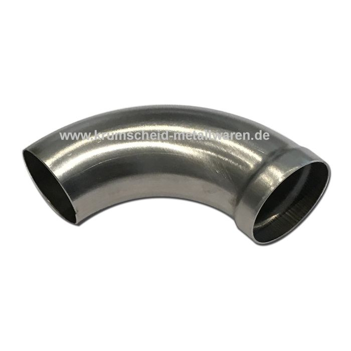 Ø 28 mm 90°-os csőív, egyik oldalán kiszélesítve, hajlítási sugár RM 52 mm, anyagvastagság 0,5 mm, anyag V2A.