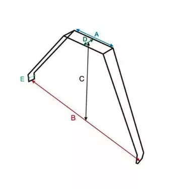 Méretek:A - 220 mmB - 560 mmC - 285 mmD - 50 mmE - 33 mmSúly: 346 g
