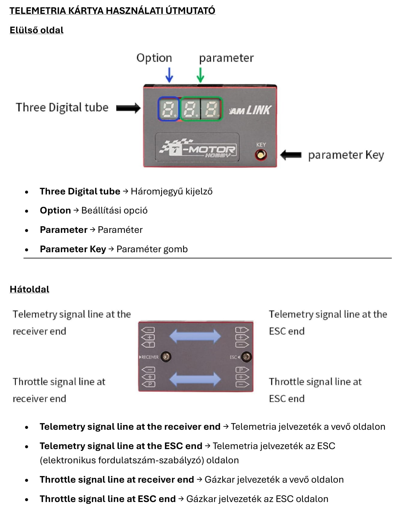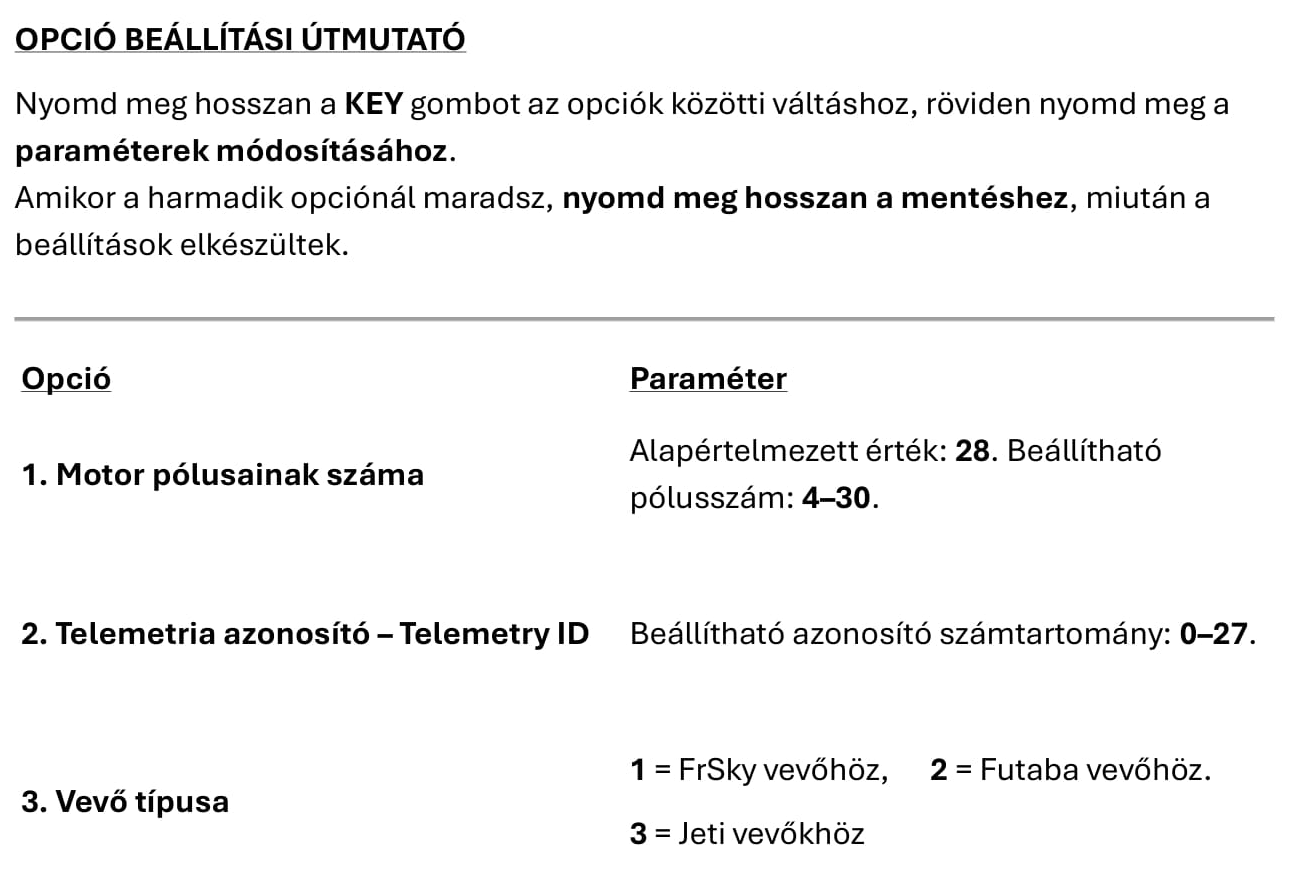 Kompatibilis: FrSky, Futaba, Jeti rendszerekkel